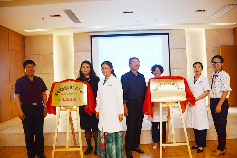 6月15日,会计系于烟台绿叶爱丽美妇产医院揭牌建立志愿服务实践基地。学院院长助理杜希成、院团委教师包微、会计系党支部书记张仁杰出席揭牌仪式。