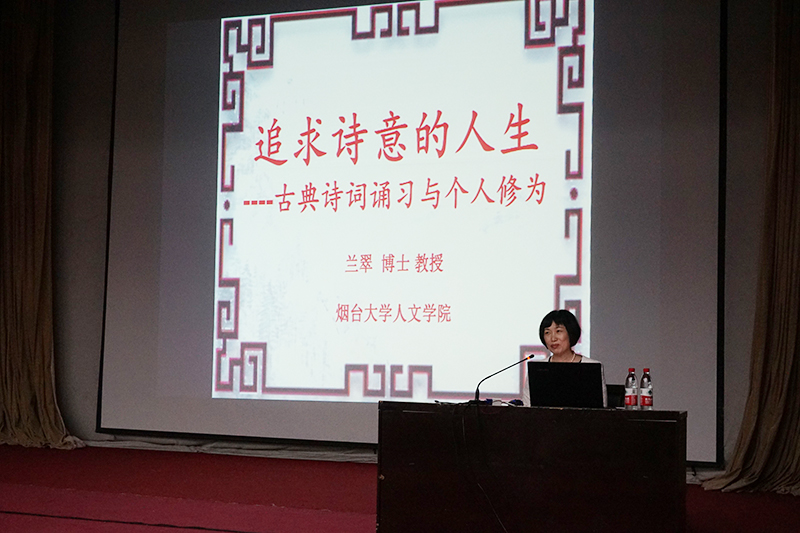 近日,第七届读书节正火热开展,5月16日下午,图书馆联合管理系于一教多功能厅举办“追求诗意的人生——古典诗词诵习与个人修为”专题讲座,特邀烟台大学人文学院硕士研究生导师兰翠教授担任主讲,院长助理杜希成、史毅,图书馆馆长孙继亮、副馆长管迎春,管理系党支部书记杜娟出席讲座。