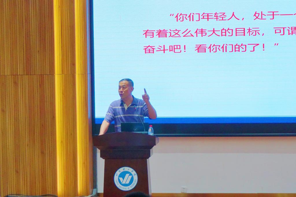 首先,糜玉林向全体新生致欢迎词,他从学院概况、师资队伍、学科特色、教学资源及学生发展等方面详细介绍了学院的基本情况。他希望同学们在四年的时间中,学会规划生活,多方面提升自己的综合能力和水平。他强调,作为人工智能学院的学子,要认清这个时代,要在的信息化、智能化社会中找准自己的定位,真正做到以梦为马不负韶华。