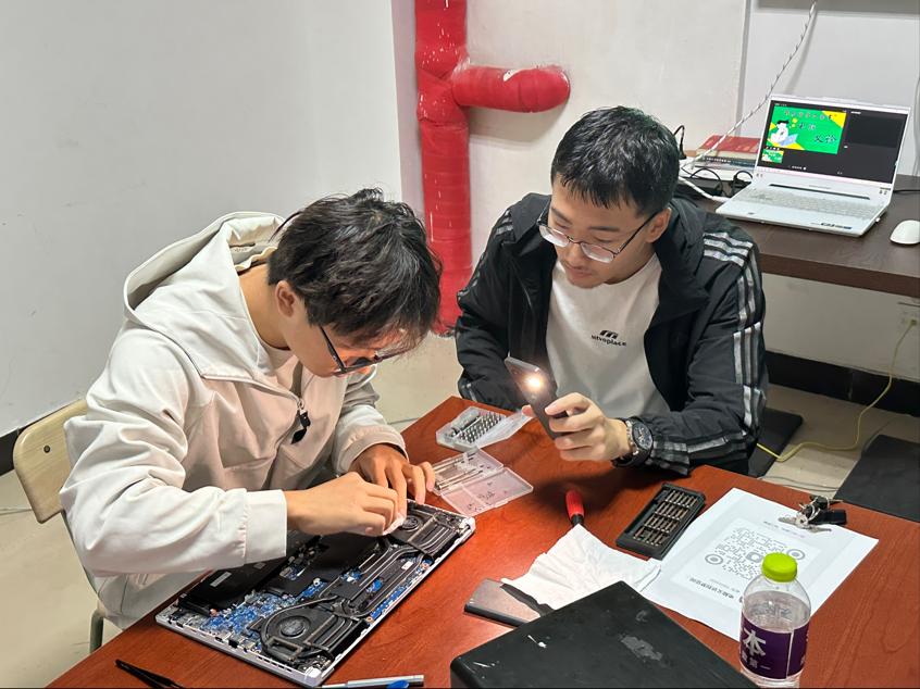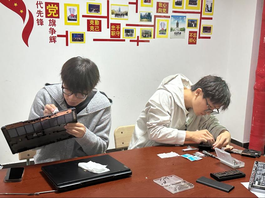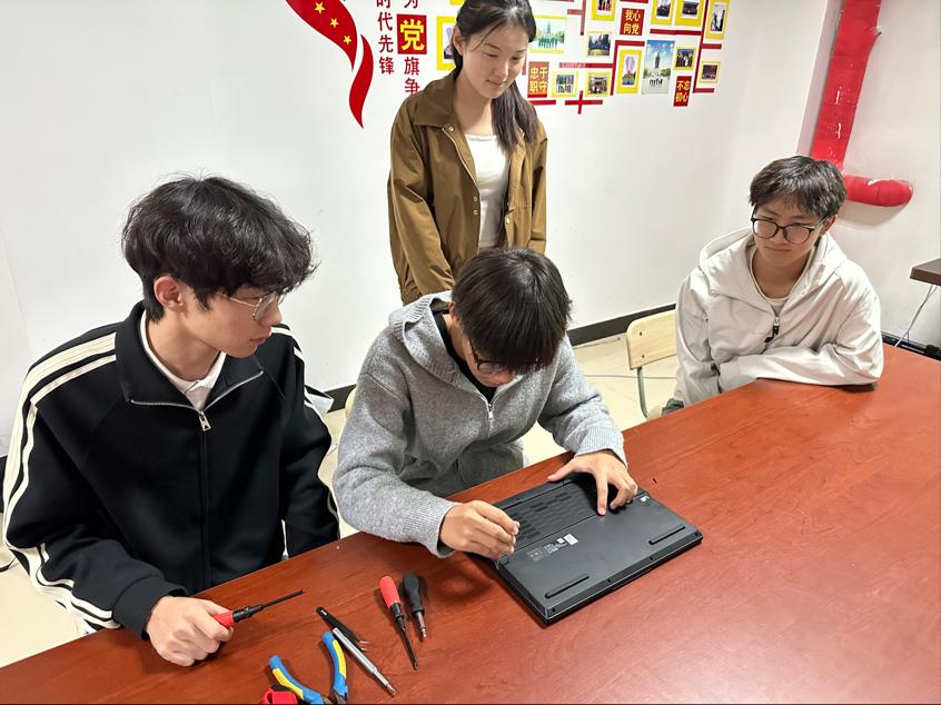 活动伊始,志愿者们提前完成工具调试、场地分区布置等工作,提供“一站式”电脑服务,涵盖拆机清灰、系统重装、软件装卸、磁盘清理、网络安全答疑、操作技巧指导等多元内容。面对不同设备“病症”,他们充分发挥专业所长:或熟练拆解机箱、精准清理内部积灰,缓解硬件散热难题;或快速重装系统、优化参数设置,提升设备运行效率;或手把手演示文件备份、病毒查杀等实用操作,助力师生提升电脑使用能力。此外,针对有新机购置需求的同学,志愿者们还结合专业知识提供硬件配置、性价比对比等导购建议,全方位守护师生电脑使用体验。
